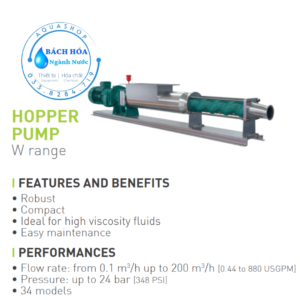 Bơm trục vít Sydex dòng W (Hopper Progressing Cavity Pump) là dòng bơm chuyên dụng cho bùn đặc, lưu chất siêu nhớt và vật liệu không tự chảy. Thiết kế phễu nạp + vít tải cưỡng bức giúp cấp liệu liên tục, vận hành ổn định, không nghẹt, không xung áp và không phá vỡ cấu trúc lưu chất. Phù hợp cho xử lý nước thải, bùn ép, polymer, hóa chất sệt, thực phẩm nhão, bùn sơn, bùn gốm, bùn giấy và nhiều ứng dụng công nghiệp nặng khác.