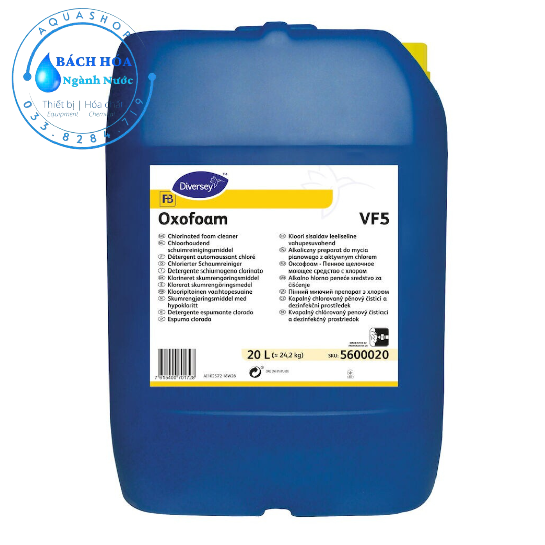 OXOFOAM VF5 20L Diversey – chất khử trùng tạo bọt gốc Clo, làm sạch và diệt khuẩn hiệu quả cho nhà máy thực phẩm, thủy sản. Giá tốt tại AquaShop.