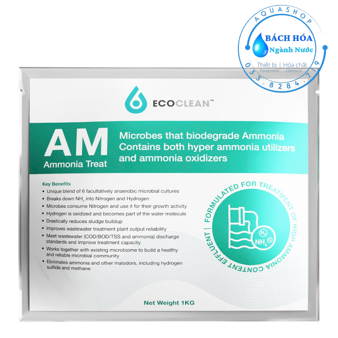 EcoClean™ AM là chế phẩm vi sinh chuyên dụng xử lý Ammonia & Nitơ, được nghiên cứu và sản xuất tại Mỹ, giúp phân hủy Amonia, giảm mùi hôi, đồng thời cải thiện toàn diện hiệu quả xử lý sinh học.
